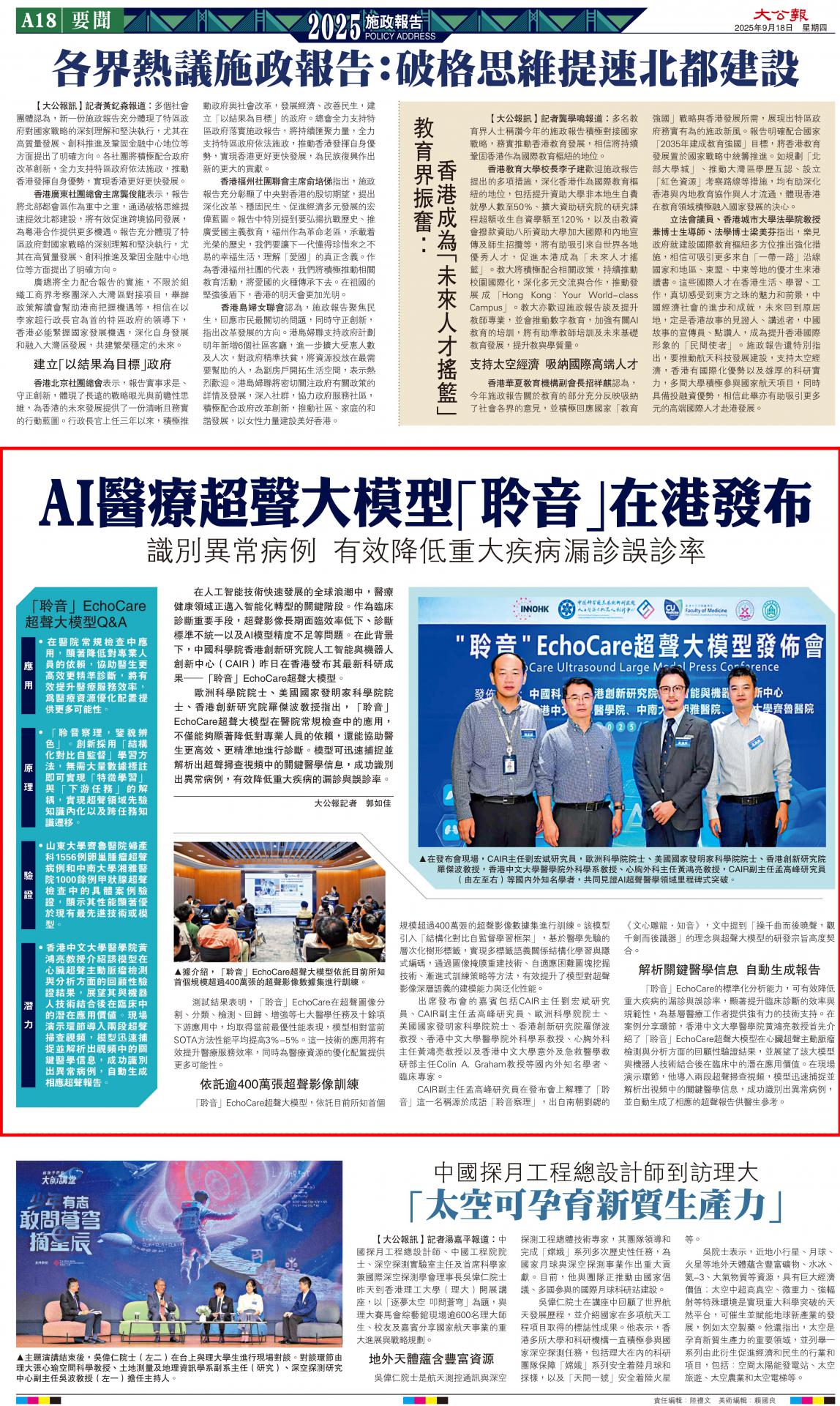 「聆音」EchoCare超声基座大模型在港发布,CAIR新成果助推AI超声进入大模型時代